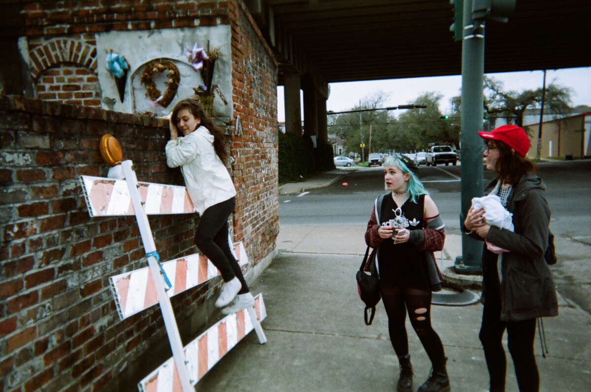 Later in the evening, we went to a launch party for issue 2 of the magazine Momma Tried, held in a roofless warehouse located at 2120 Port St in New Orleans. The event was billed as “Black tie appreciated, nudity encouraged.” There I met Kaja, whom I was Facebook friends with but had never met due to living in another country, and Ann and her Wesleyan friends, whom I’d also met online prior to arrival.